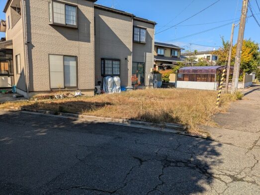 角地物件。道路幅員は広々6mでコンパクトな土地。