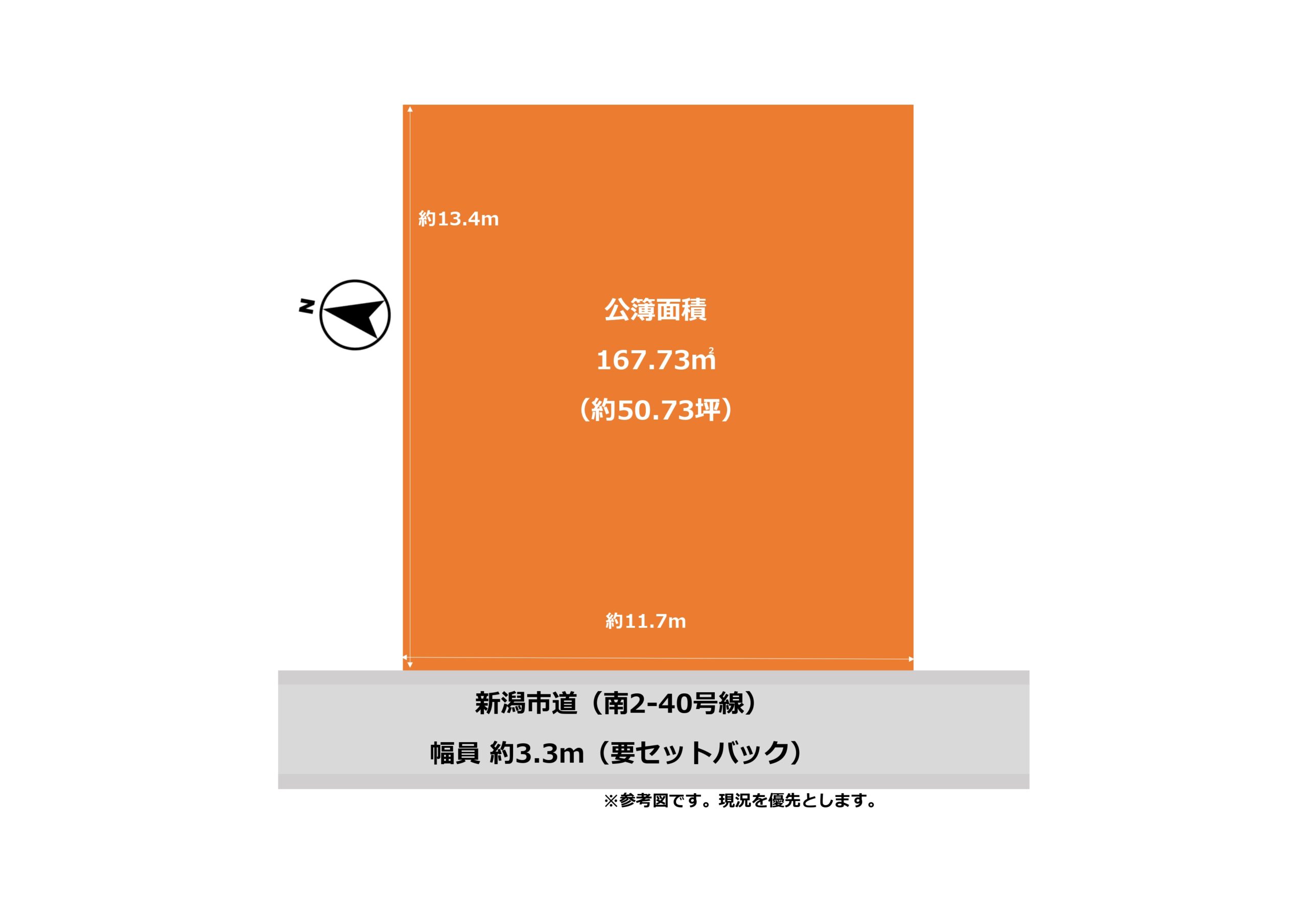 敷地図。 参考図です。現況を優先とします。