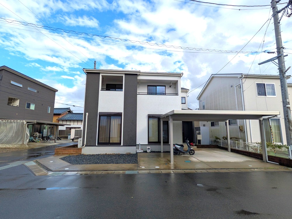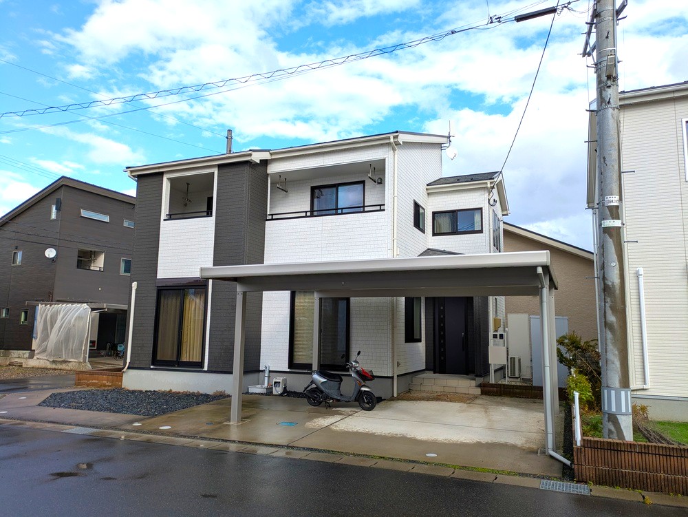 白が映える爽やかな外観。築6年のオール電化の4LDK、家族の笑顔があふれる住まいです。