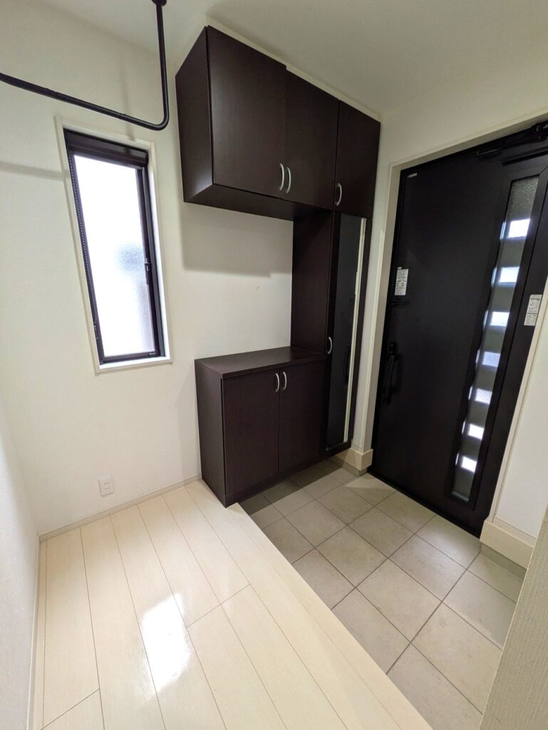 家族みんなが使いやすい玄関。シューズ収納も完備され、整理整頓された快適な空間です。