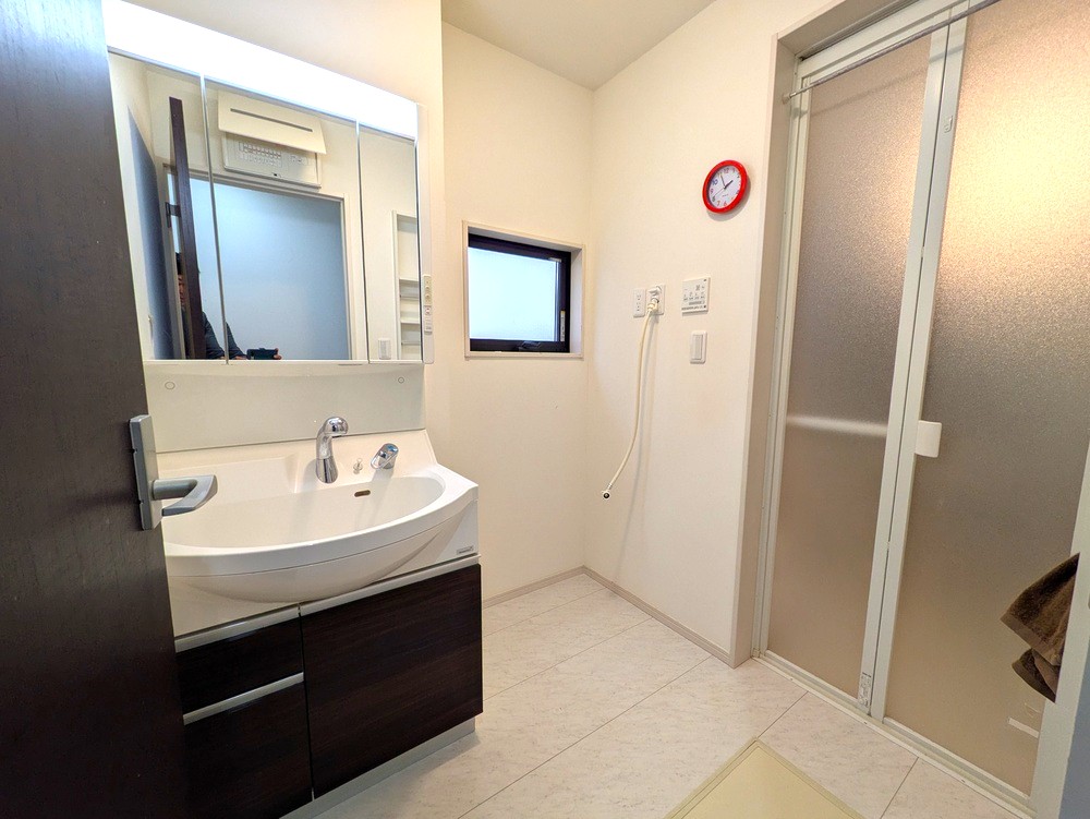 家族みんなが使いやすい脱衣場。洗面台と収納が揃い、毎日の身支度や洗濯もスムーズです。