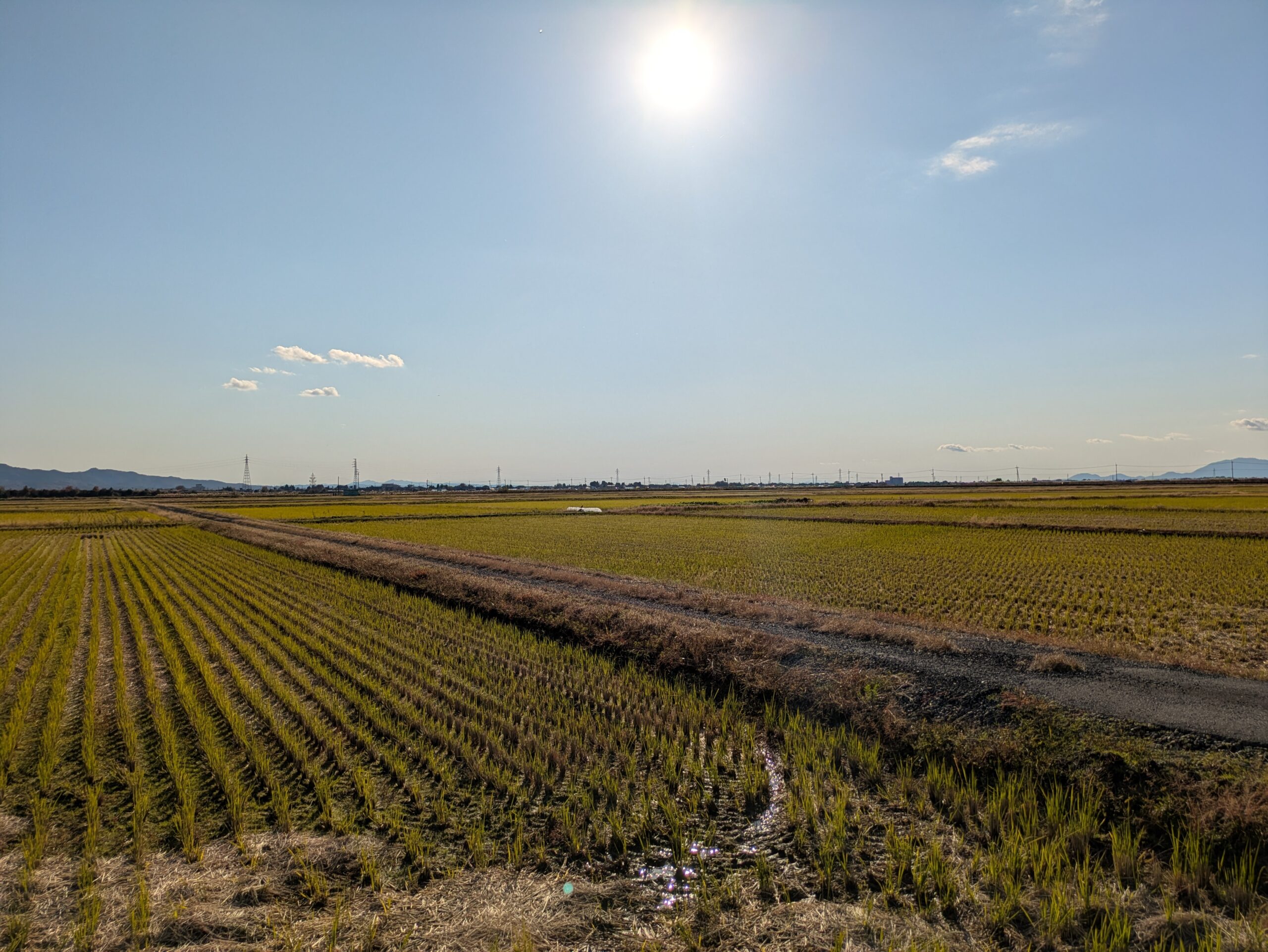 敷地の南側は一面に田んぼが広がっています。 のどかな田園風景を眺めていると気持ちがリラックスできますね。