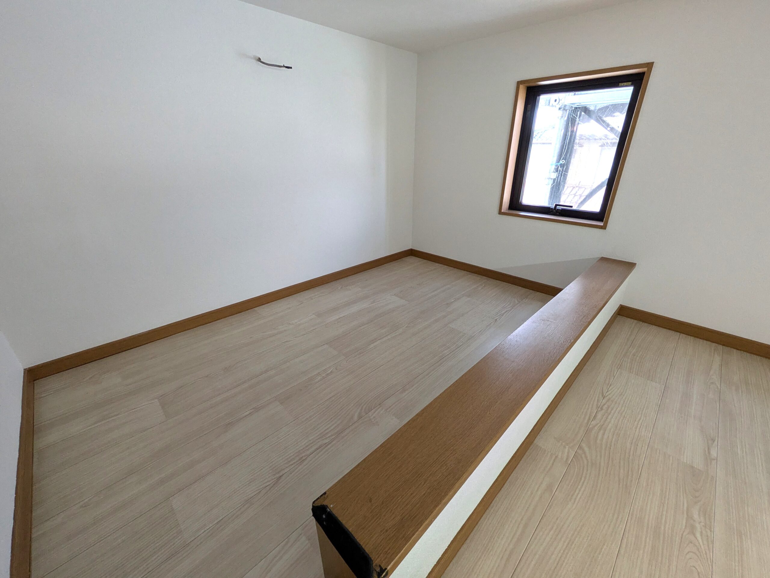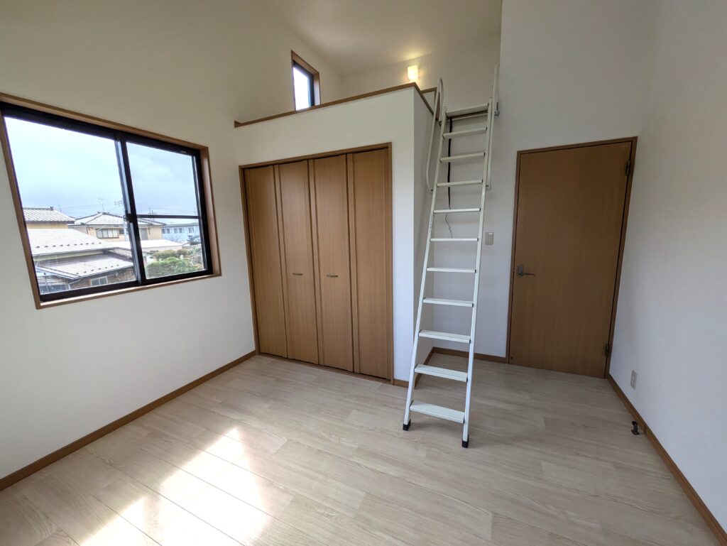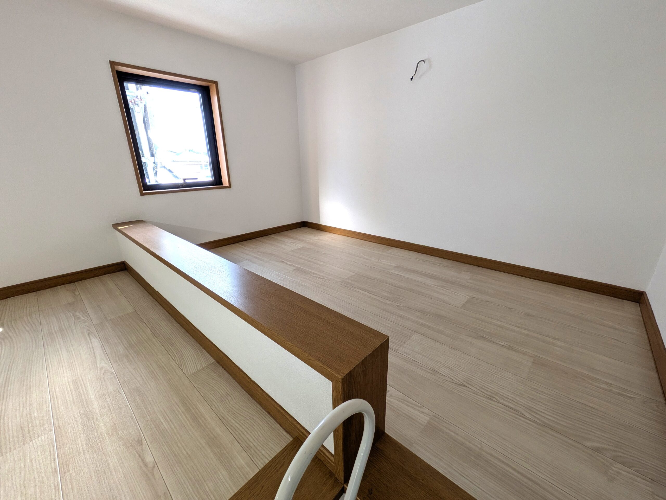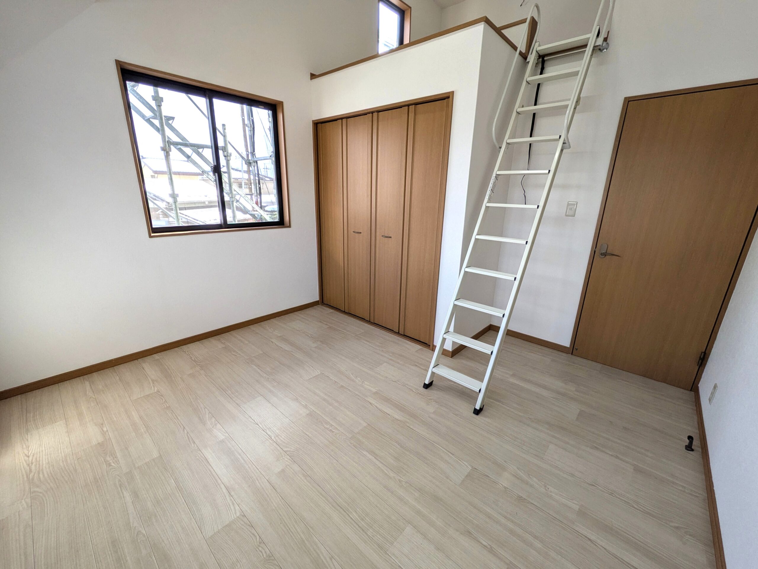 2階6帖洋室(南側)写真。 天井壁クロスと床材を交換しました。 収納に加え、ロフトも付属しています。