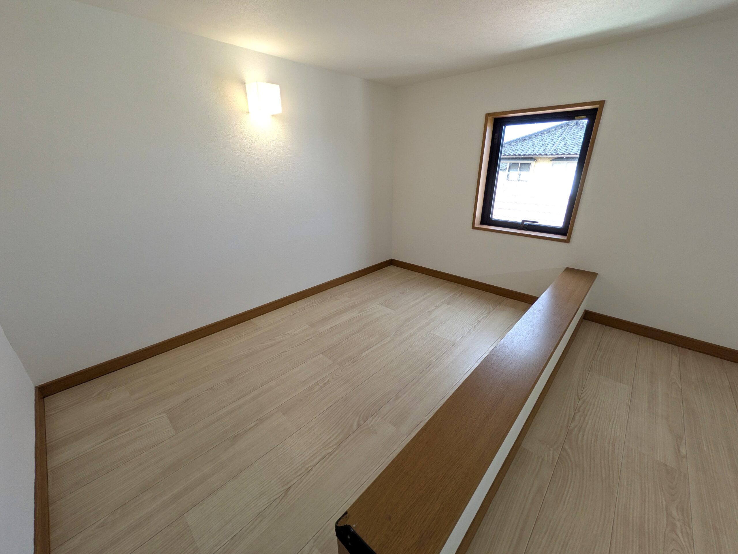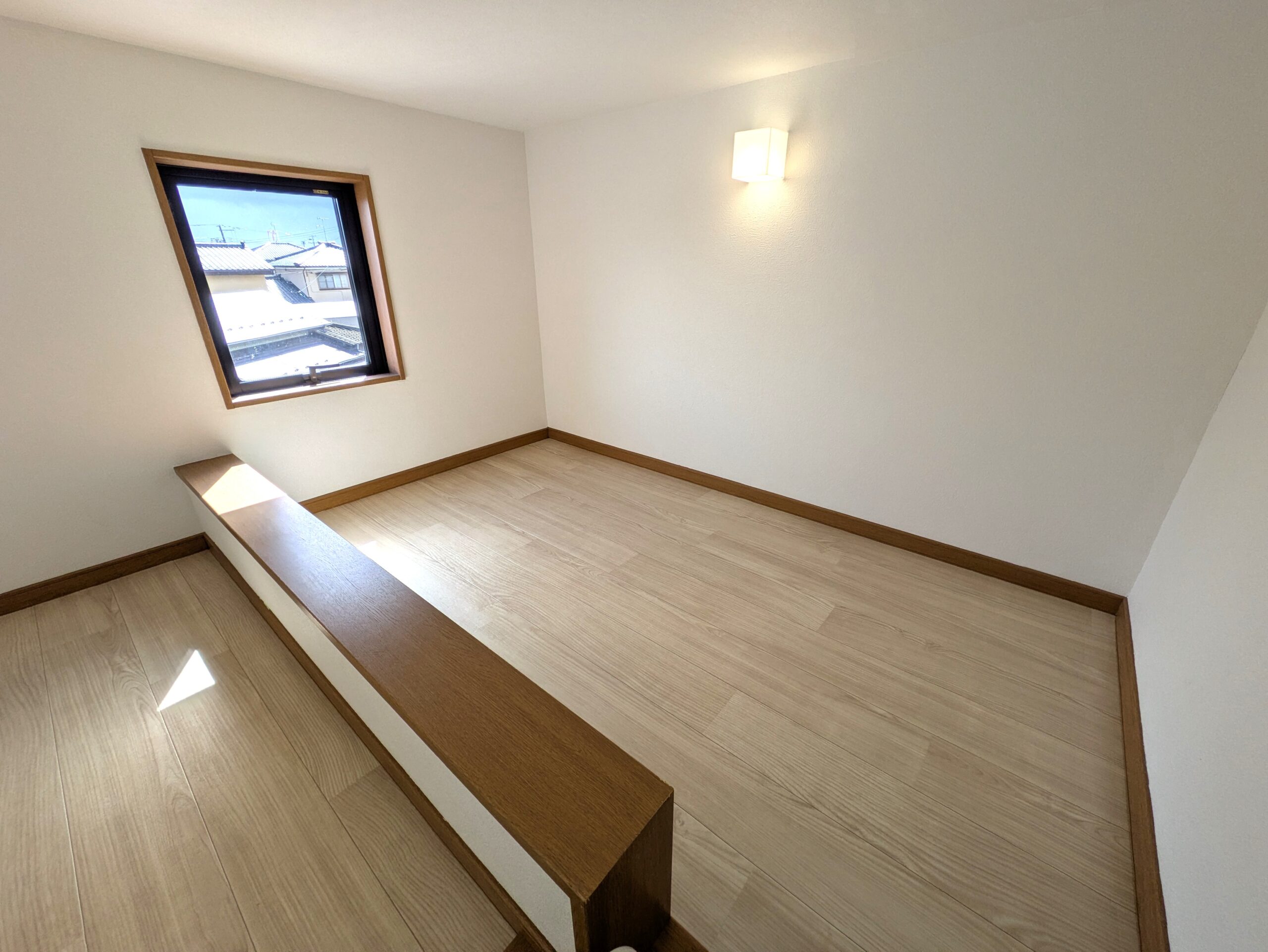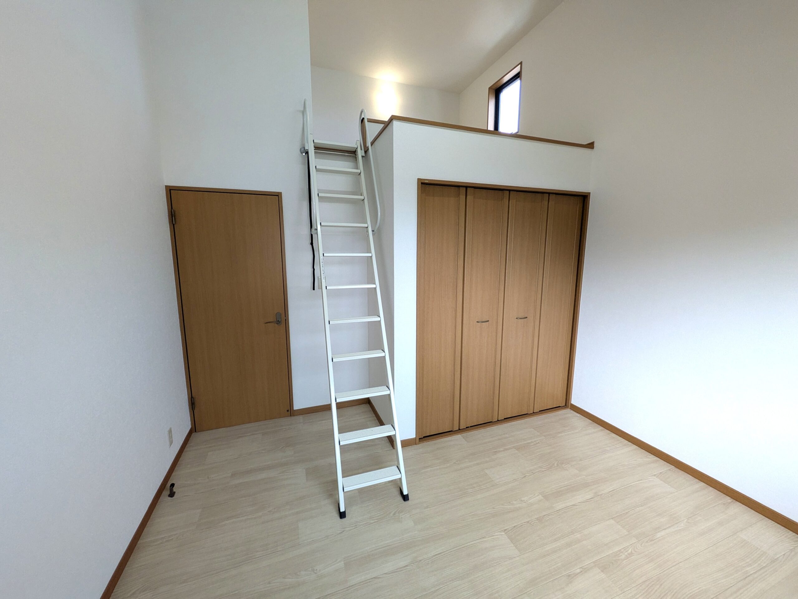2階6帖洋室(南側)写真。 天井壁クロスと床材を交換しました。 収納に加え、ロフトも付属しています。