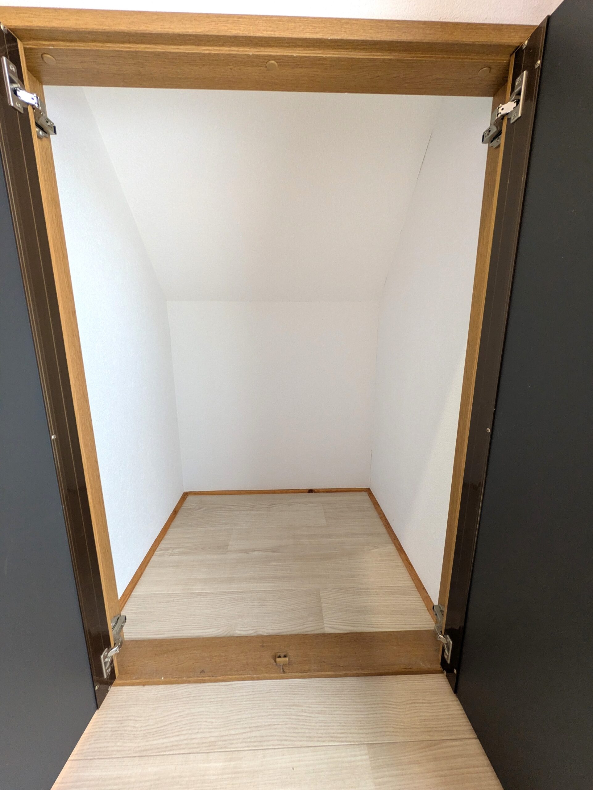 階段下には収納スペースがあります。 お好きな用途でご利用頂けます。また、トイレのすぐ目の前なので消耗品などの保管にも便利ですね。