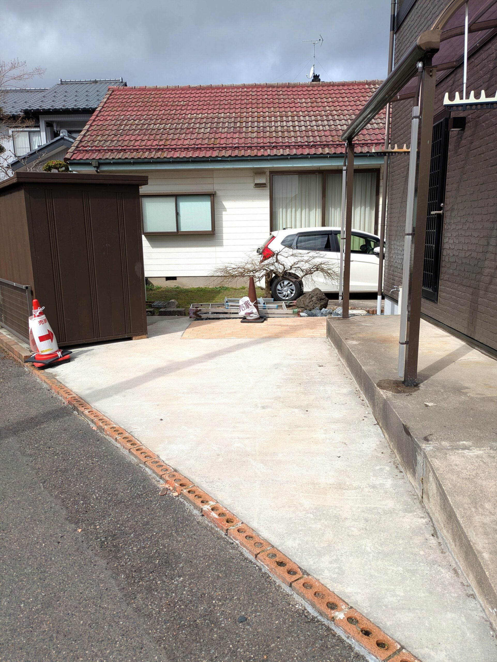 建物側面の駐車場です。 お庭を解体し、駐車スペースに変更しました。 コンパクトカーや軽自動車の駐車が可能ですし、バイクや自転車置き場としてもご利用できます。