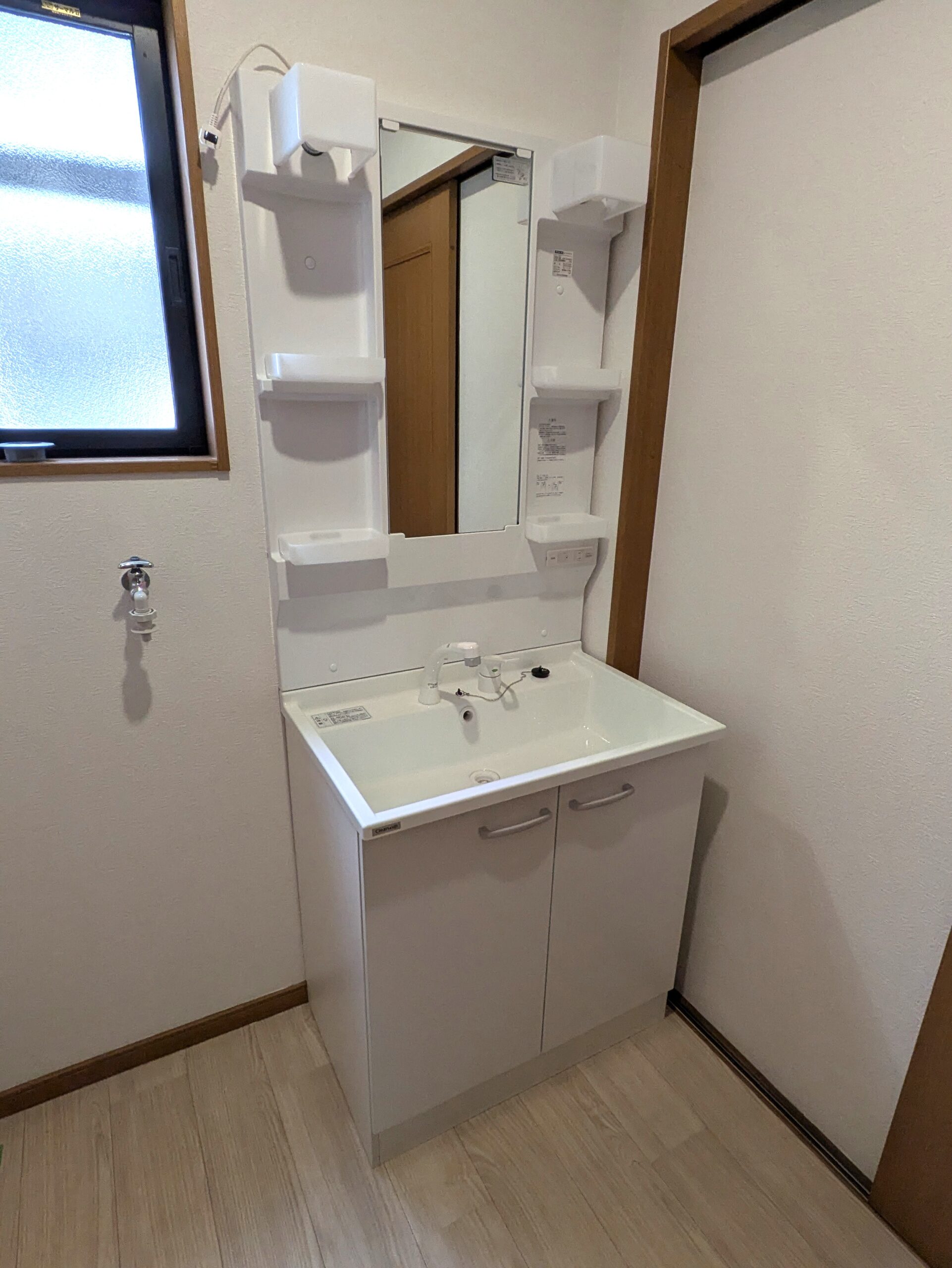 洗面化粧台は新品と交換しました。 シャワーノズルタイプなので使い勝手が良く、収納スペースもあるので便利です。