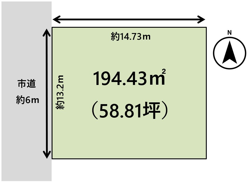 接道間口は約13mある整形な約59坪の住宅用地です。ご希望の建物プランも可能です。