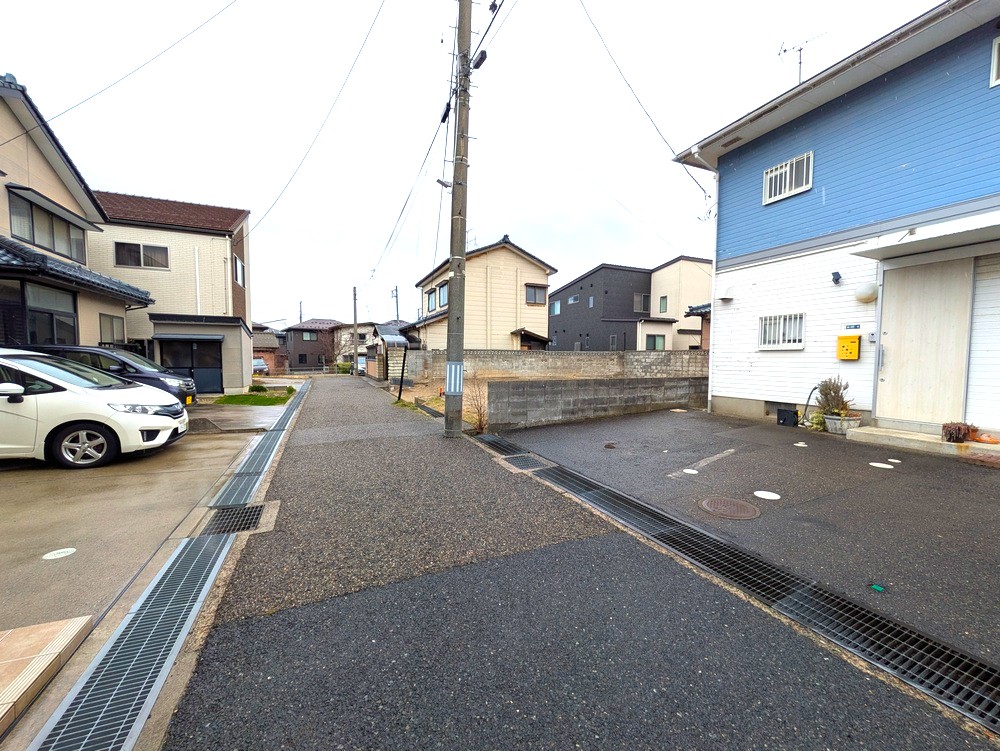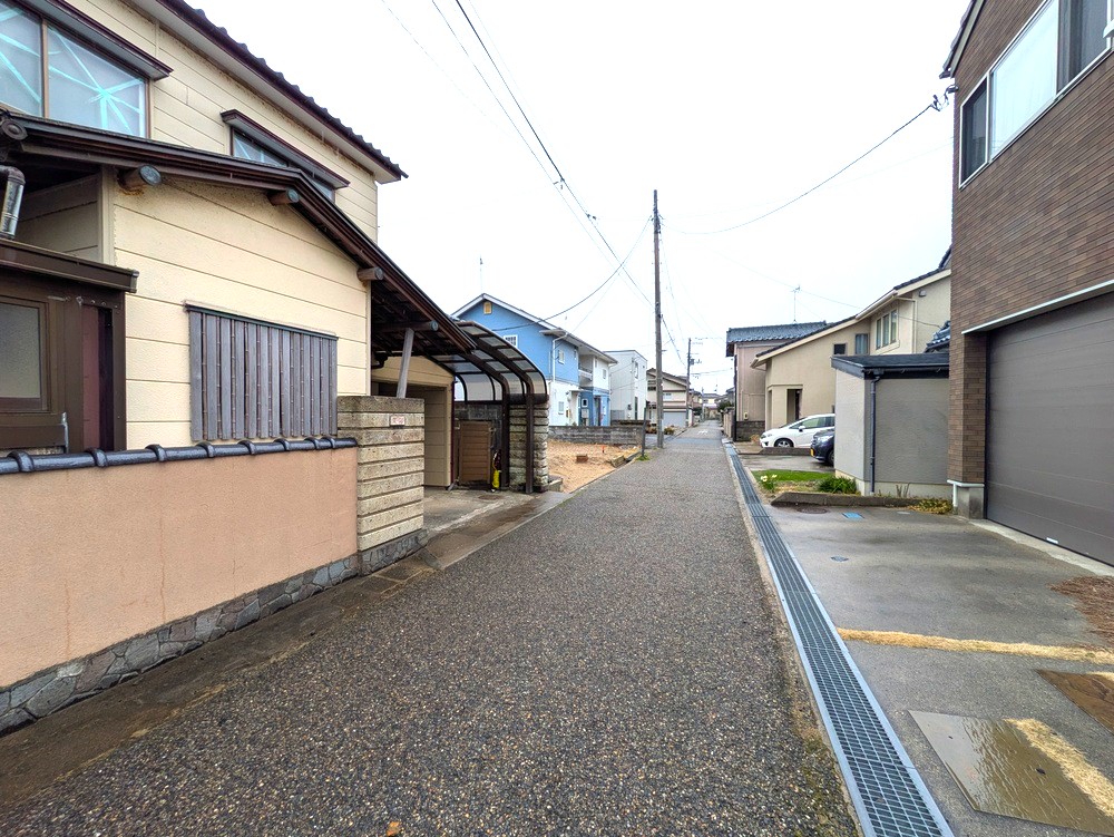 前面道路は約4m。通り抜けがないため比較的落ち着いた住環境です。