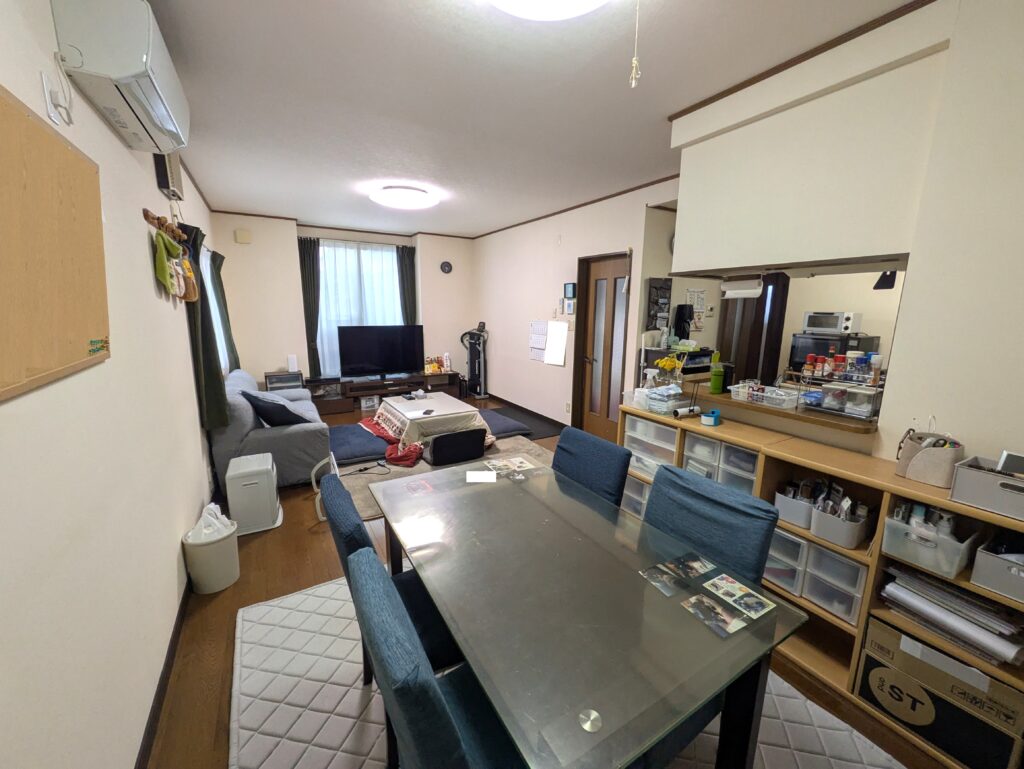 リビング写真。 人気の対面式キッチンです。 ダイニングテーブルを真ん中においてもスペースに余裕があります。