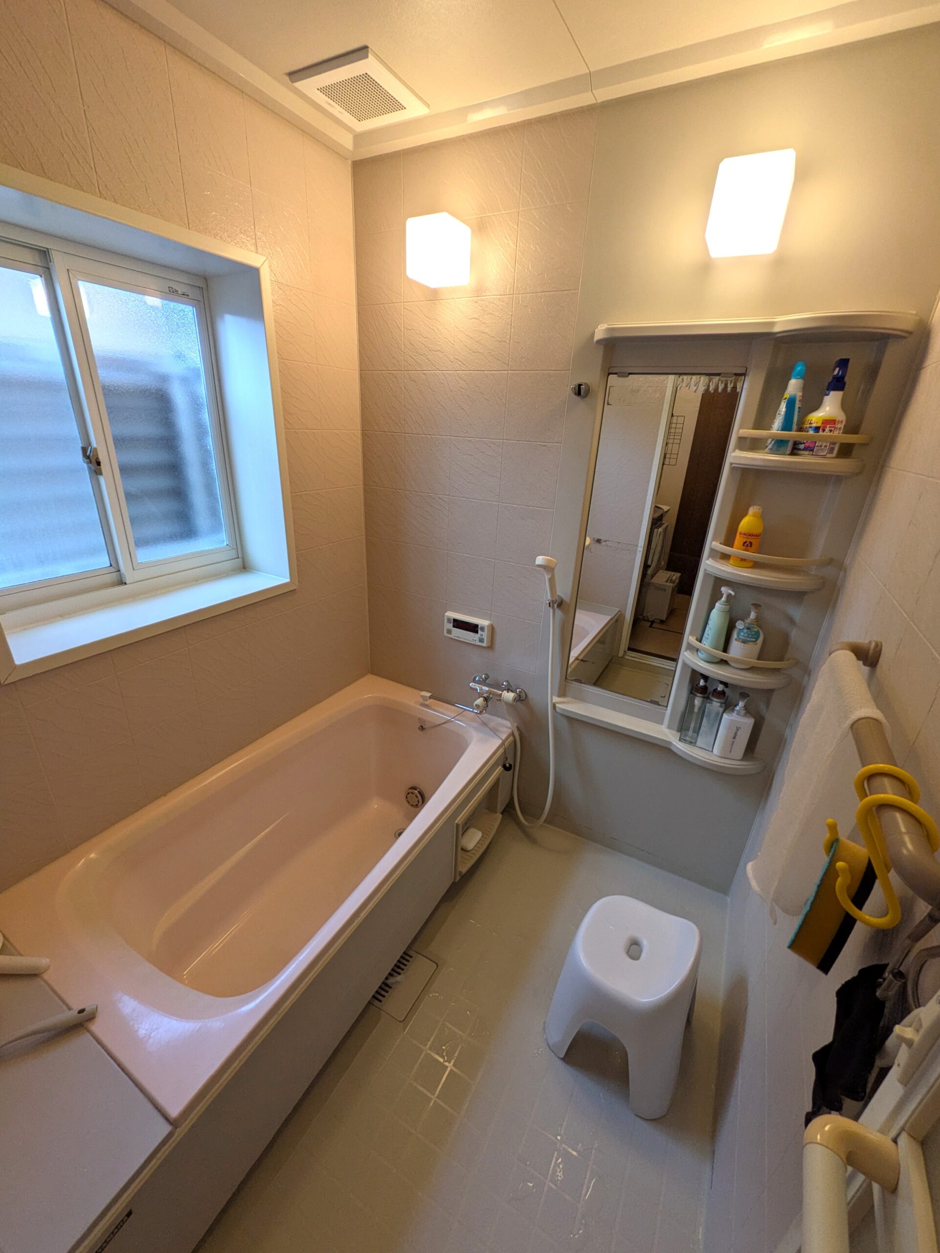 浴室写真。 壱日の疲れを癒してくれる浴槽です。 一坪タイプなのでゆったりとお風呂に浸かれます。